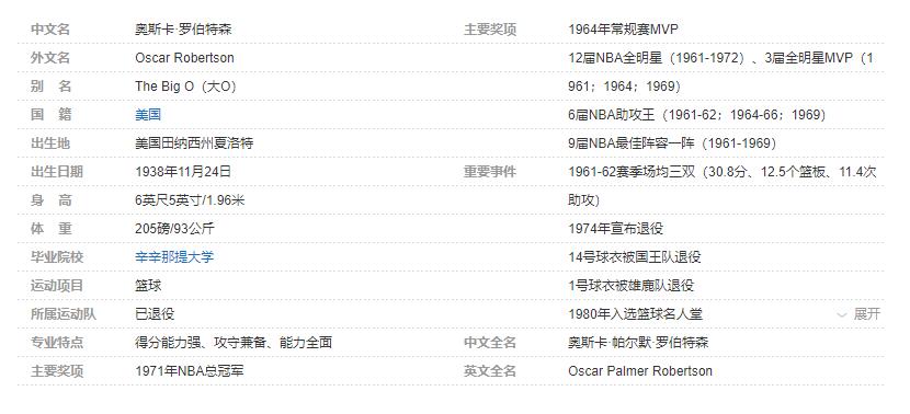 奥斯卡-罗伯特森个人详细资料简介: