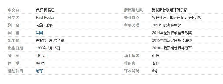 保罗·博格巴(Paul Pogba),1993年3月15日出生于法国巴黎拉尼叙尔马恩,几内亚裔法国职业足球运动员,司职中场,现效力于曼彻斯特联足球俱乐部。
