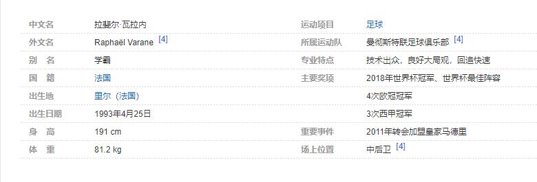 拉斐尔·瓦拉内(Raphaël Varane),1993年4月25日出生于法国里尔,法国足球运动员,司职中后卫,现效力于英格兰的曼彻斯特联足球俱乐部 。个人简介:
