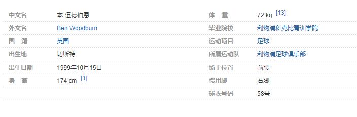 本·伍德伯恩(Ben Woodburn),全名:本杰明·伍德伯恩(Benjamin Woodburn),1999年10月15日出生于英格兰切斯特,威尔士足球运动员,场上司职前腰,现效力于英格兰足球超级联赛的利物浦足球俱乐部。个人简介: