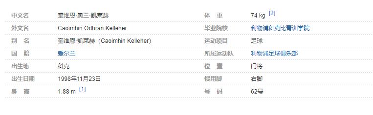 奎维恩·凯莱赫(Caoimhin Kelleher)(Caoimhin的爱尔兰语发音译名是奎维恩),全名:奎维恩·奥兰·凯莱赫(Caoimhin Odhran Kelleher),1998年11月23日出生于爱尔兰科克,爱尔兰足球运动员,场上司职门将,现效力于英格兰足球超级联赛的利物浦足球俱乐部。个人简介