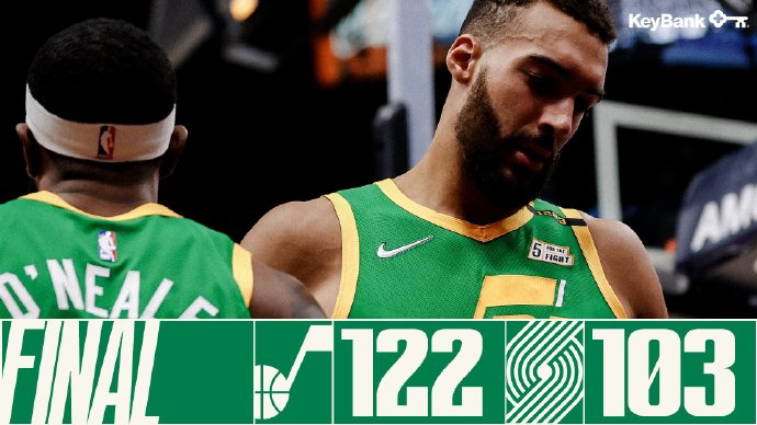 24直播网4月9日讯 NBA常规赛爵士主场迎来开拓者的挑战,虽然爵士仍旧占据榜首的位置,但是近来遭遇2连败。刚开场米切尔接连砍分帮助爵士取得领先,开拓者后场三名枪手轮番拿分帮助开拓者紧咬比分。第二节虽然前半段爵士仍旧牢牢保持领先,但随后开拓者打出一波12-0的高潮完成反超,上半场开拓者56-53领先3分。下半场回来米切尔带领爵士首先反扑完成反超,随后爵士又多次打出高潮单节净胜开拓者21分一举拉开比分,第四节开拓者也未能缩小分差,最终爵士122-103轻松击败开拓者结束2连败,同时他们取得主场23连胜。