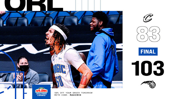 24直播网1月5日讯 NBA常规赛,魔术今日迎战骑士,前者在开季四连胜后已经遭遇两连败,暂列东部第二位,而后者上场比赛则是战胜了老鹰,排名东部第四位。比赛上来艾克萨姆就不幸受伤离场,魔术打出一波10-0的完美开局,调整过后的骑士开始发起反扑并成功追上比分,半场结束时魔术仅领先2分。易边再战,骑士进攻端再次陷入低迷,魔术趁势单节赢下20分将分差扩大到二十分以上,比赛彻底失去悬念,最终魔术大胜骑士,结束连败。