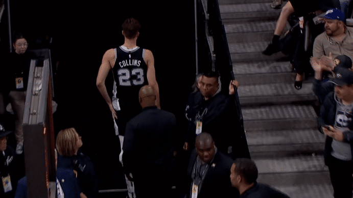 在本场被驱逐前,科林斯6投4中,三分3中2,罚球2中2,得到12分8板2助1断2帽;本场比赛,马刺中锋铂尔特尔和主力索汉都因伤提前退出比赛。