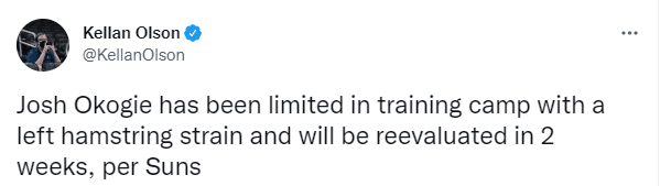 来源:24直播网10-01 10:2424直播网10月01日讯 ,新赛季还没正式开打,NBA又添伤员;据太阳随队记者Kellan Olson报道,球队后卫奥科吉遭遇左腿筋拉伤,将在两周后重新进行评估;换言之;太阳新援奥科吉至少伤停2周,这说明受伤程度至少是腿筋一级拉伤。
