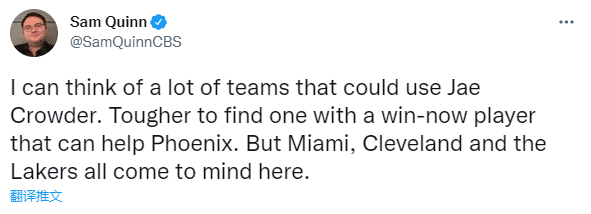 克劳德潜在下家有哪些球队?NBA记者Sam Quinn发推写道:我可以想到有很多球队可以使用克劳德,很难找到一个可以像他帮助太阳赢球的球员;迈阿密热火、克利夫兰骑士和洛杉矶湖人都可能是他的潜在下家。