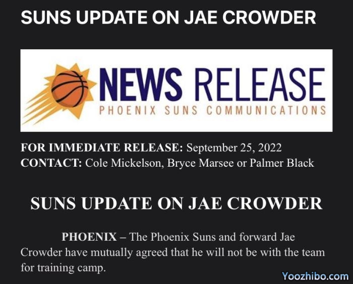 24直播网09月26日太阳官方正式宣布,球队已与克劳德达成不参加新赛季训练营的协议,克劳德将不会参加明日的媒体日和后天开启的训练营;之后克劳德发声告别太阳:感谢太阳,迎接新的挑战,99号很快回归。