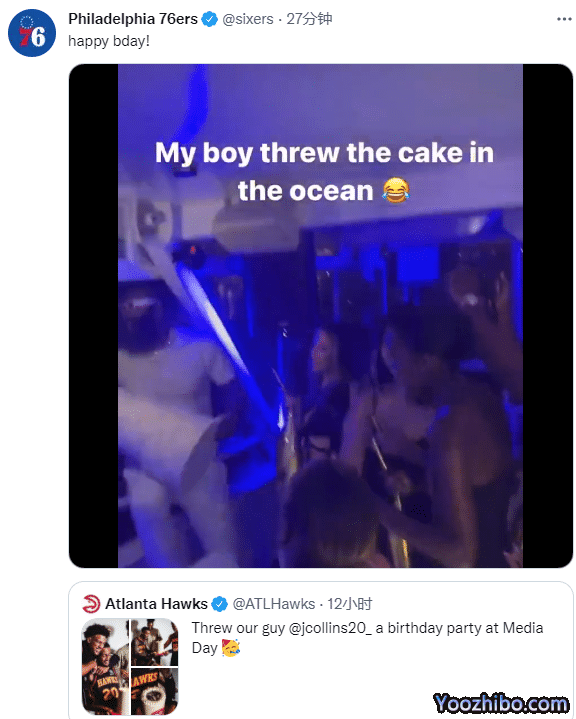76人官方回应老鹰羞辱恩比德 晒哈登庆生视频:把蛋糕扔进海里