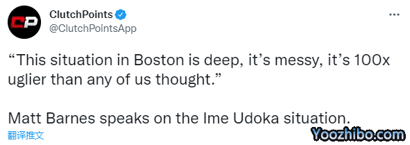 来源:24直播网09-24 11:1424直播网09月24日最近几天,凯尔特人主帅乌度卡因出轨女职员被禁赛一年引发巨大争议,究竟乌度卡和谁发生关系更是在推特上引发猜测风波,有八卦账号猜测乌度卡出轨霍福德的妹妹,后者已经发声澄清;乌度卡被停职后,前NBA球员马特-巴恩斯炮轰乌度卡。