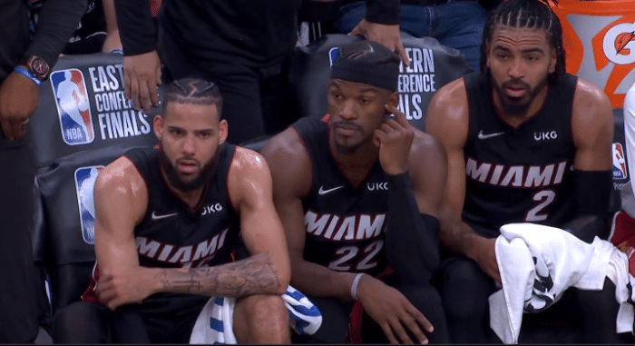 东决G3一战太惨烈,下半场巴特勒因右膝出现炎症,本场比赛不会回归,伤退前出战19分钟,8投3中拿到8分3篮板2助攻2抢断,奥拉迪波顶替巴特勒首发出战。