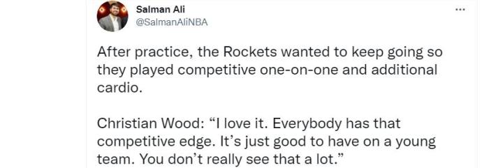 来源:24直播网10-02 10:5724直播网10月02日讯 ,火箭为了备战新赛季,球队在休斯顿开始了训练营。在今天的训练结束之后,伍德接受了记者采访,并谈到了自己新赛季的队内角色。