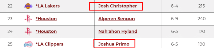 湖人试训6名新秀!1米96后卫晒科比纹身,预测顺位就是首轮第22位