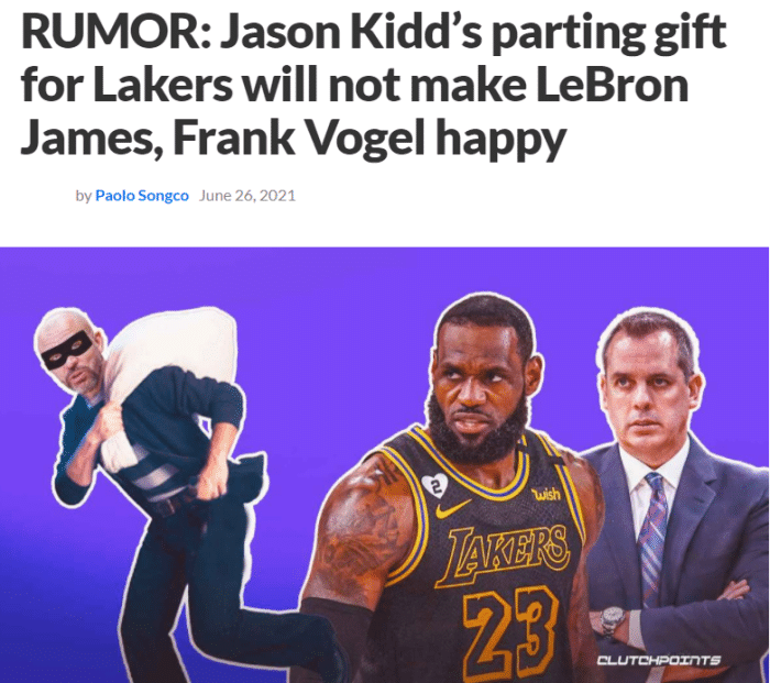 来源:24直播网06-27 11:5324直播网讯 北京时间6月27日,据美媒ClutchPoints报道,前湖人助教杰森-基德可能会邀请湖人教练组的一些成员到达拉斯独行侠,目的是组建属于自己的教练组,更好地帮助东契奇;对此美媒表示基德的离别礼物会让詹姆斯和沃格尔生气的。
