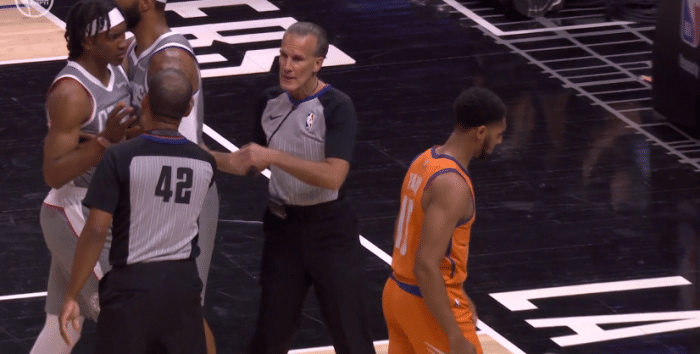 火药味!乔治单节10中2推搡布克吃T,佩恩和快船替补席吵起来
