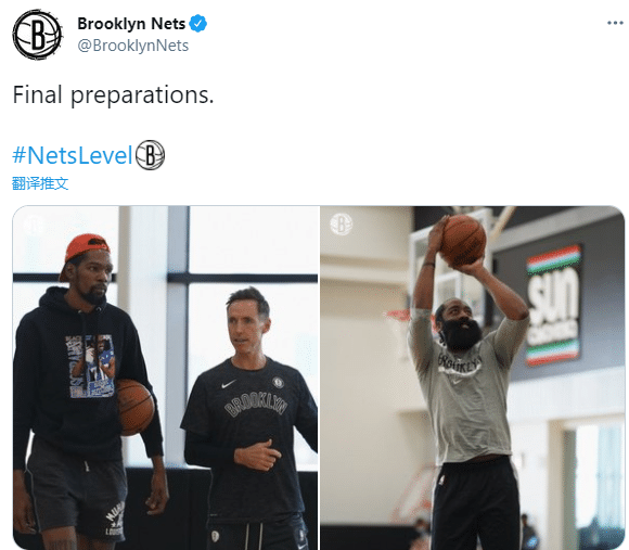 来源:24直播网06-19 11:4124直播网讯 北京时间6月19日,布鲁克林篮网备战抢七大战,篮网官推晒出杜兰特、哈登带队训练的画面,晒照并发推写道:最后的备战;抢七将在明天开打,地点是篮网巴克莱中心球馆,篮网拥有主场优势。