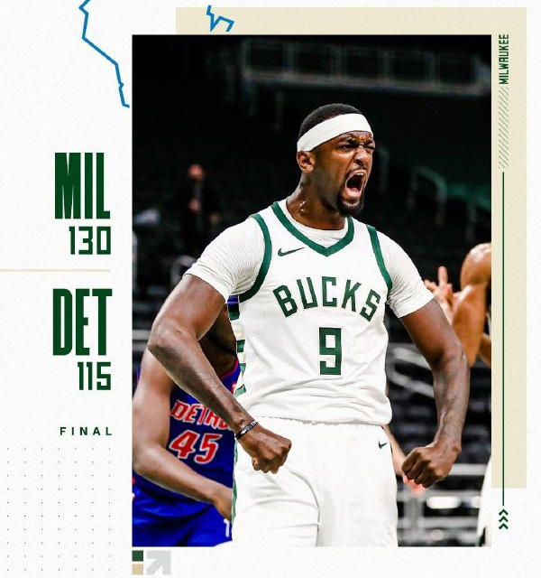 雄鹿130-115大胜活塞 字母哥25+8 格兰特31+9