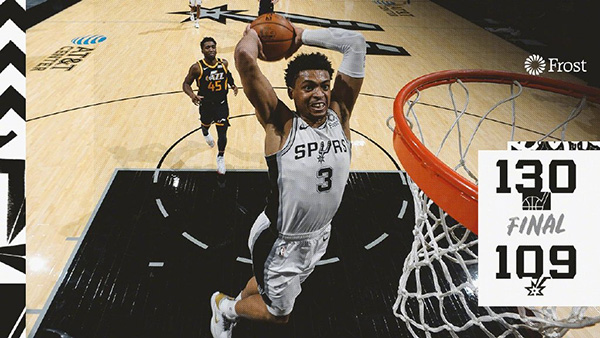 NBA简报:爵士130-109大胜马刺 博格达28分