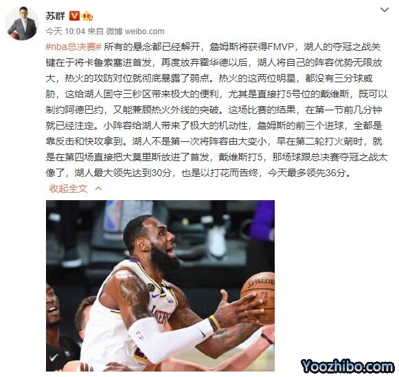 苏群王猛赛后分析火湖大战总结:最艰辛的总冠军属于湖人!