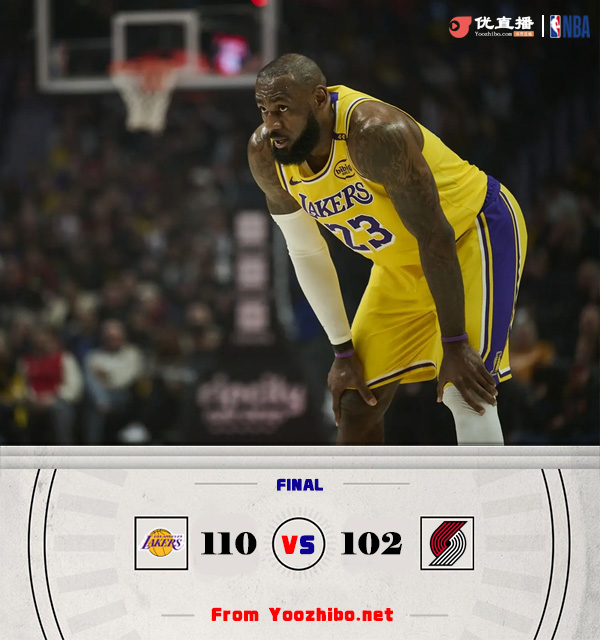 湖人110-102击败开拓者 詹姆斯40+8+11失误 里夫斯32+7 东契奇缺阵