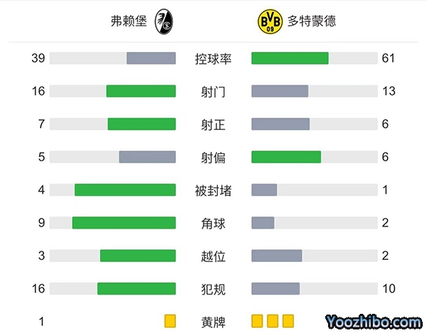 全场比赛结束,最终多特蒙德3-1逆转弗赖堡。