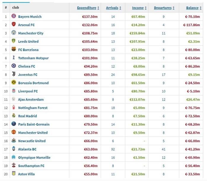 加上这笔支出,拜仁在今夏欧洲俱乐部的引援支出排行榜上暂时登顶。