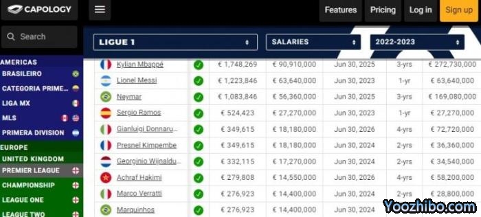 薪水排名前10的球员都来自巴黎圣日耳曼。这份薪水统计还没有算奖金,实际可能更高。