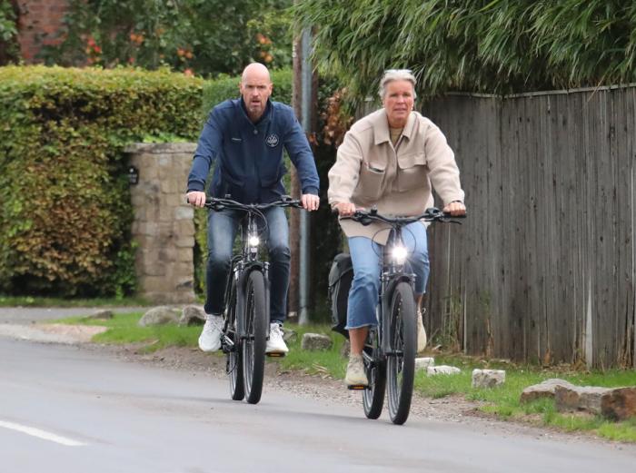 24直播网09月11日讯 曼联本周日做客水晶宫的英超比赛,已经被延期,可能要等到明年才能补赛。红魔主帅滕哈格因此得以在周末得到空闲,与妻子比安卡在柴郡骑单车游玩。不过,红魔的悠闲日子不会太久,周四的欧联杯肯定如期进行,而下周日主场对利兹联的比赛,亦有望无需延期。