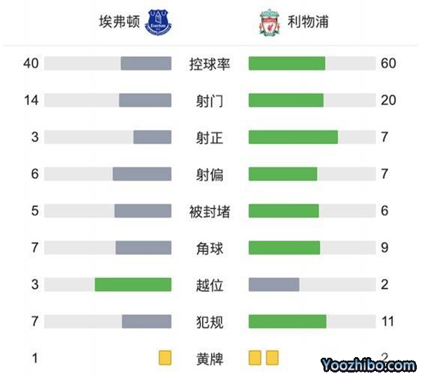 全场比赛结束,利物浦0-0埃弗顿。