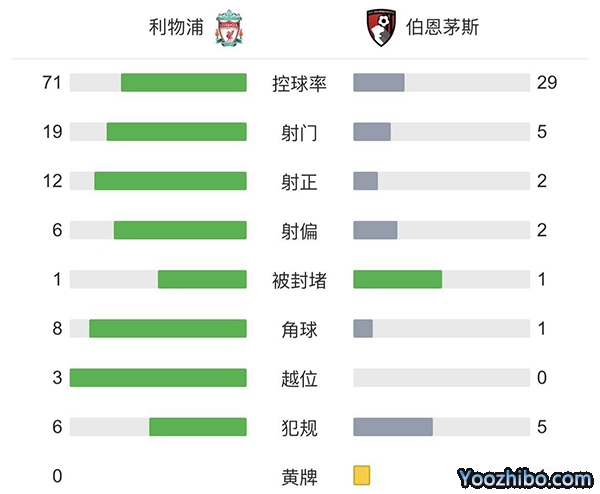 全场比赛结束,利物浦9-0伯恩茅斯。