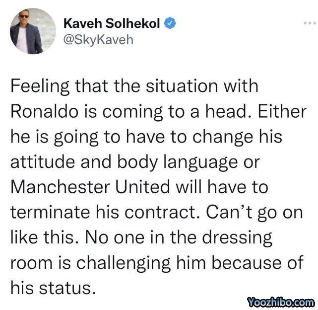 0-4输给布伦特福德的比赛中,C罗在球场上显得非常沮丧。急切想要离开曼联的心情,直接影响到了C罗在球场上的态度。赛后,他拒绝与队友们去向随队远赴客场的球迷致意,而是径直回到更衣室。对于C罗如此特立独行、恃宠而骄的行为,曼联高层已经被惹恼了。这位名记表示:“C罗的问题被推至顶点,他要么必须改变自己的态度和肢体语言,否则曼联就会与他解约。”